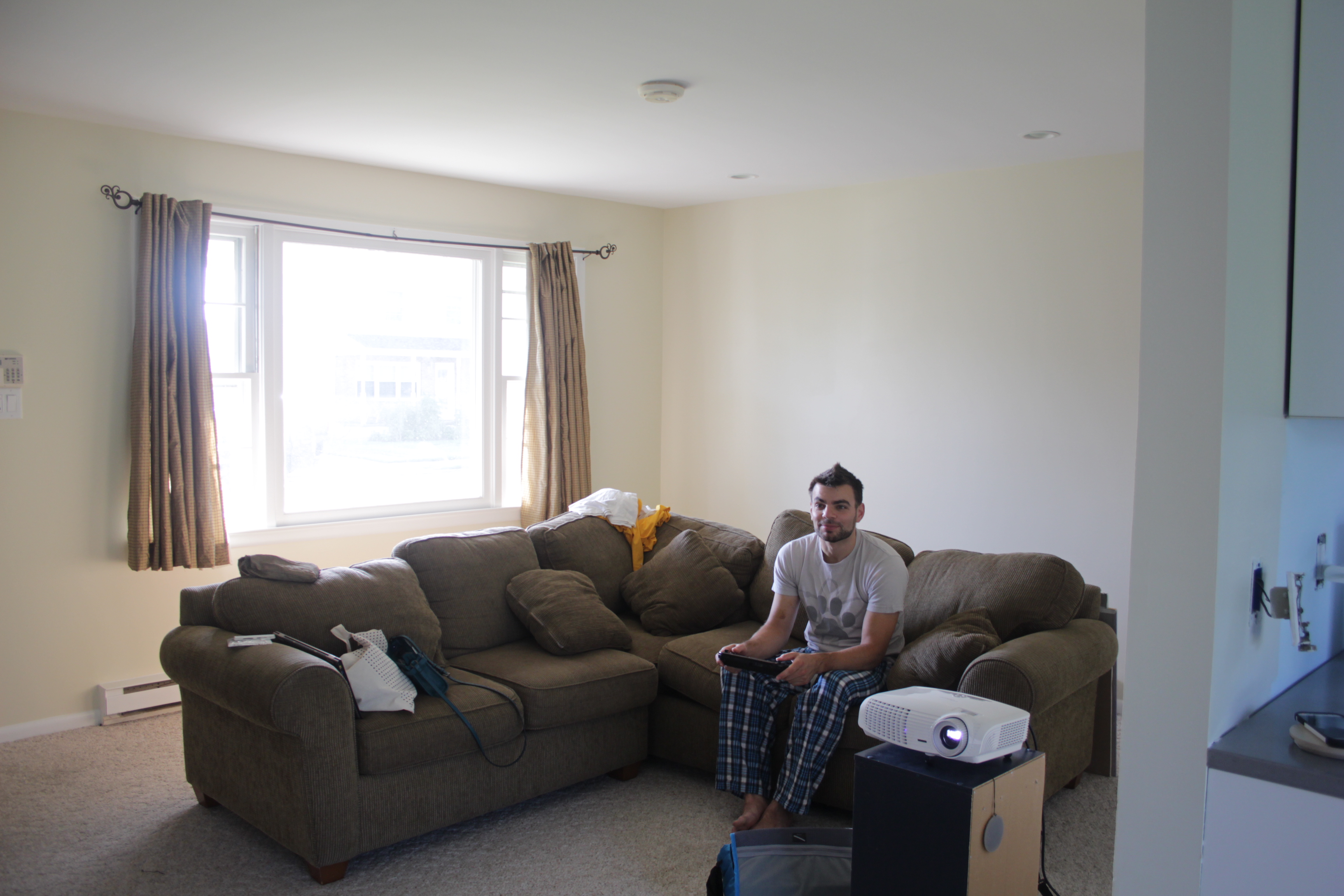 The painting itself took a crew of 5 or 6 guys ten hours. They managed to sand and put two coats of paint on the ceiling, walls, and trim all in one day. The change is dramatic, the house feels much brighter and more open now (admittedly some of that openness also comes from finally having the house clean).