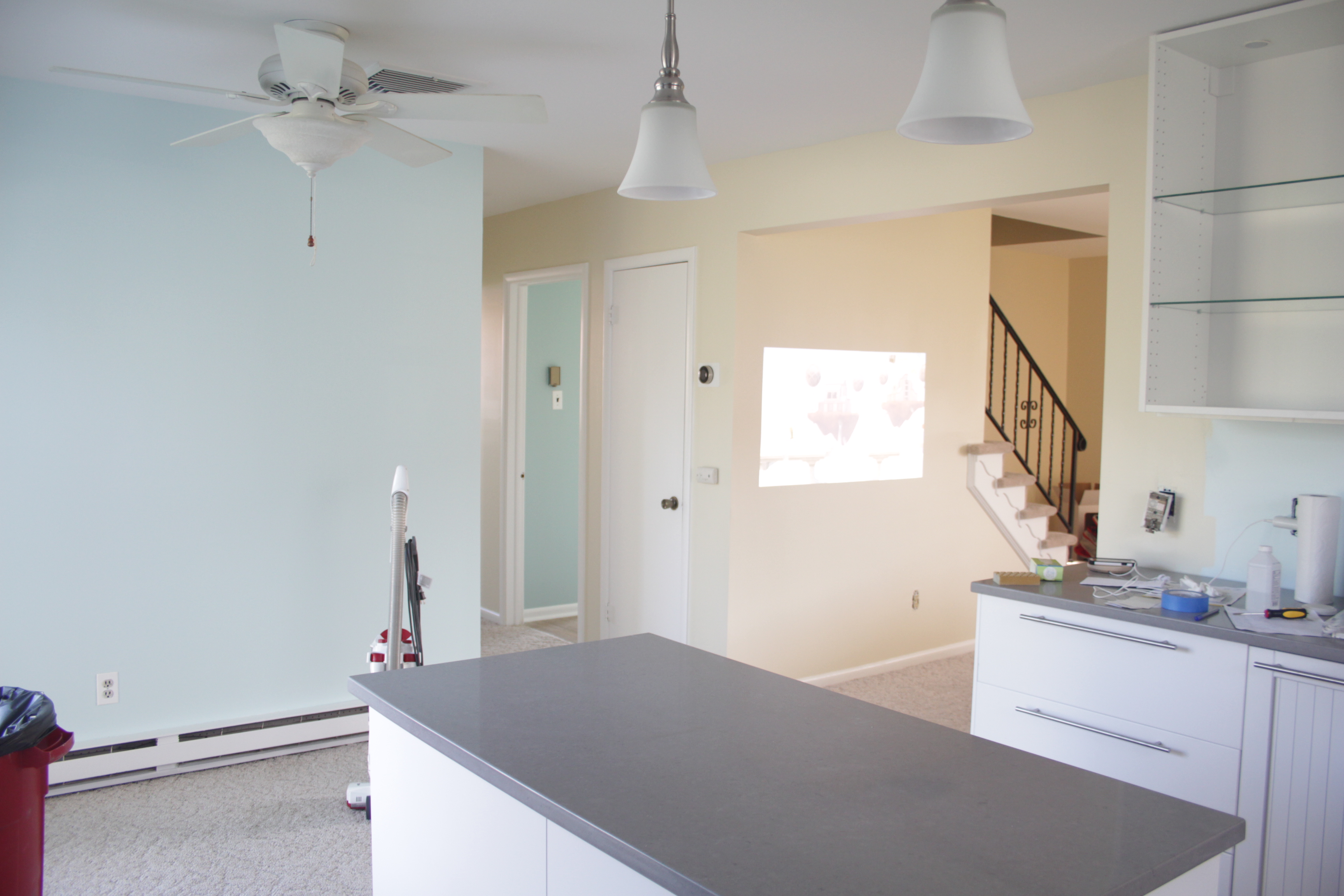 The house is finally starting to look good. Gone are the piles of debris everywhere (except the laundry room and downstairs bathroom). The carpets need a professional cleaning but at least they’ve been vacuumed. There’s a ton of little finishing to do all around the house, but the major stuff is very close to being done. My last big kitchen task is to tile the backsplash.