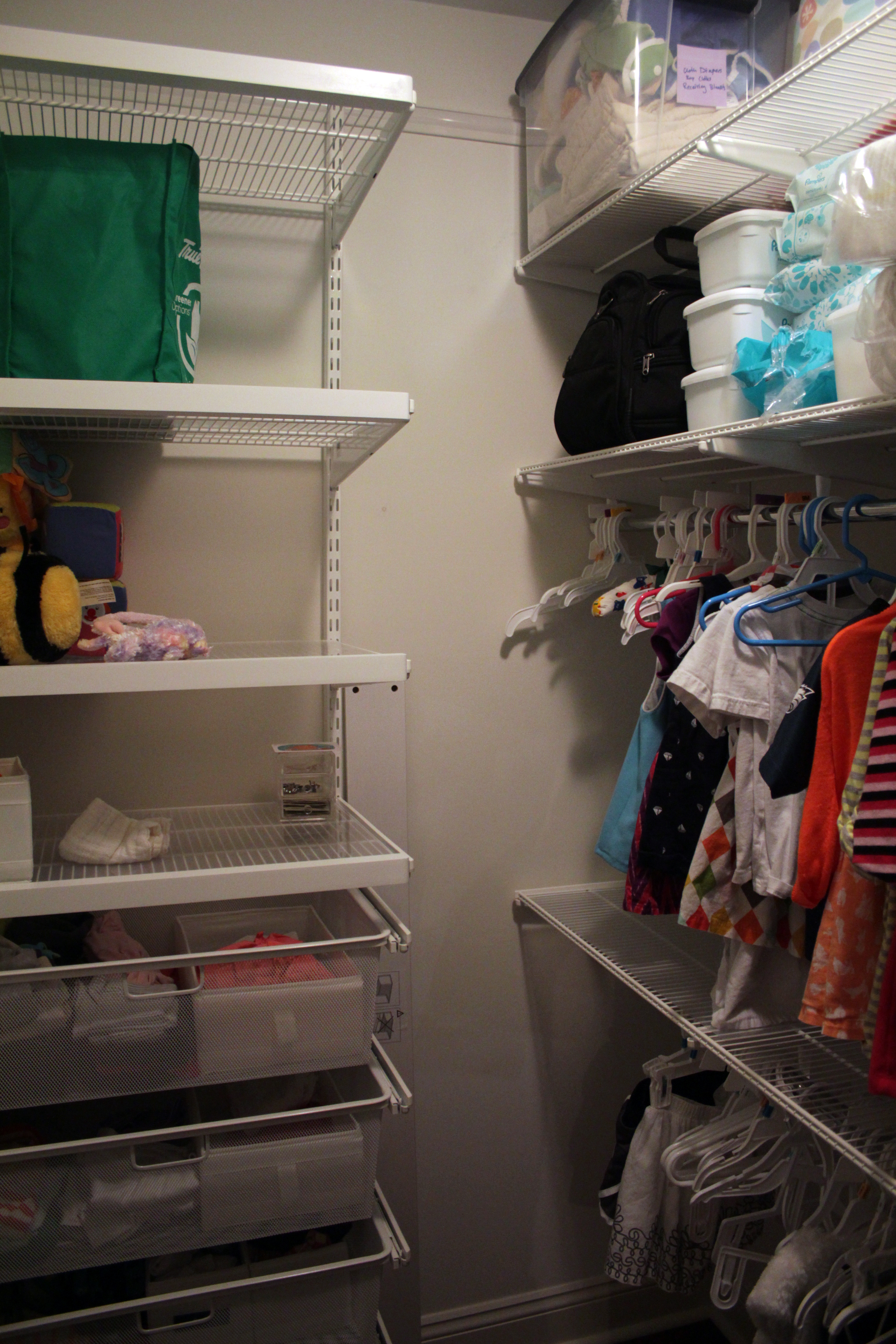 So now the toddler’s room is “fixed” and I can now easily find socks that fit her. So ends another fruitful elfa sale. Look out, master bedroom closet. You’re next.