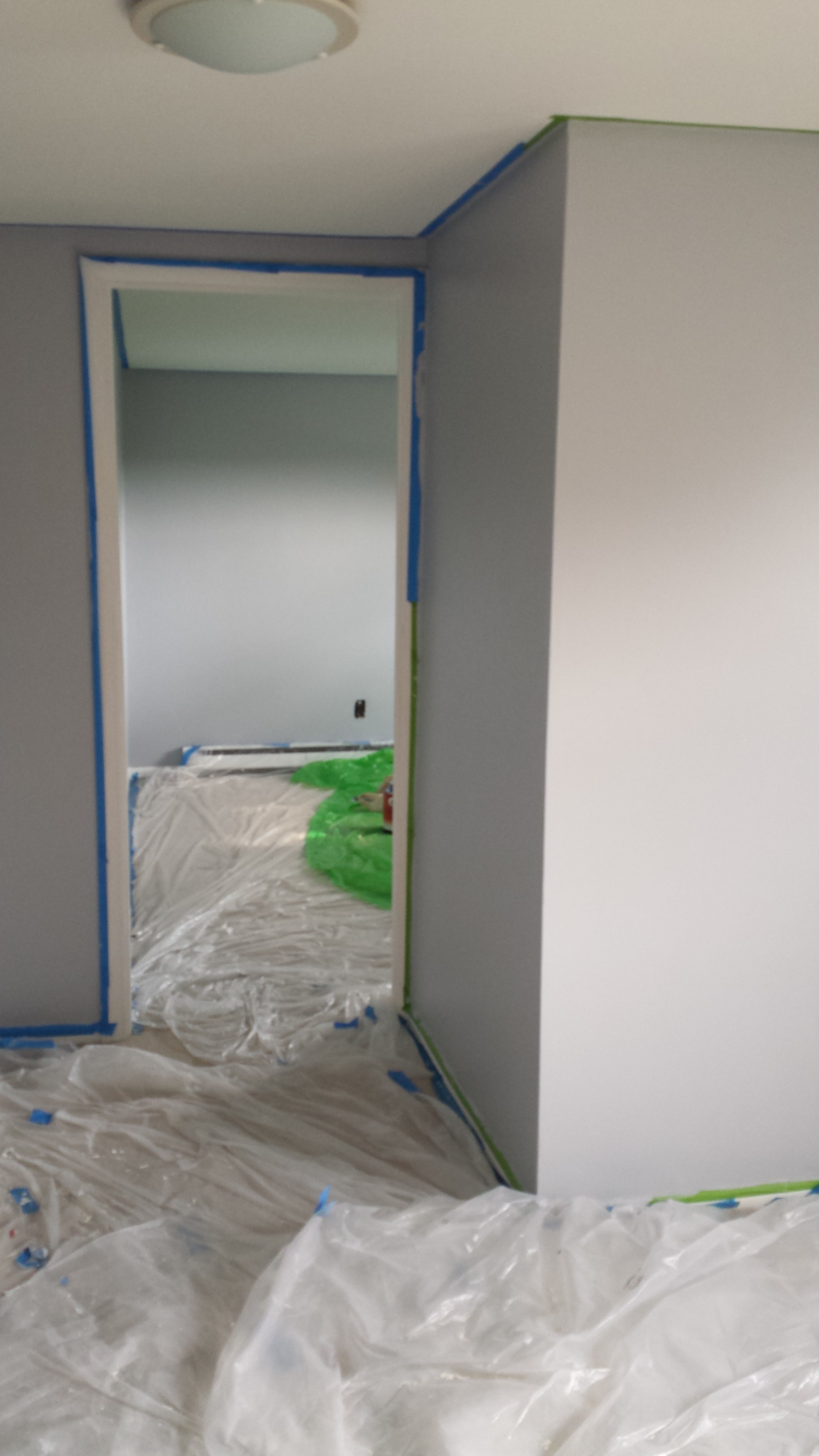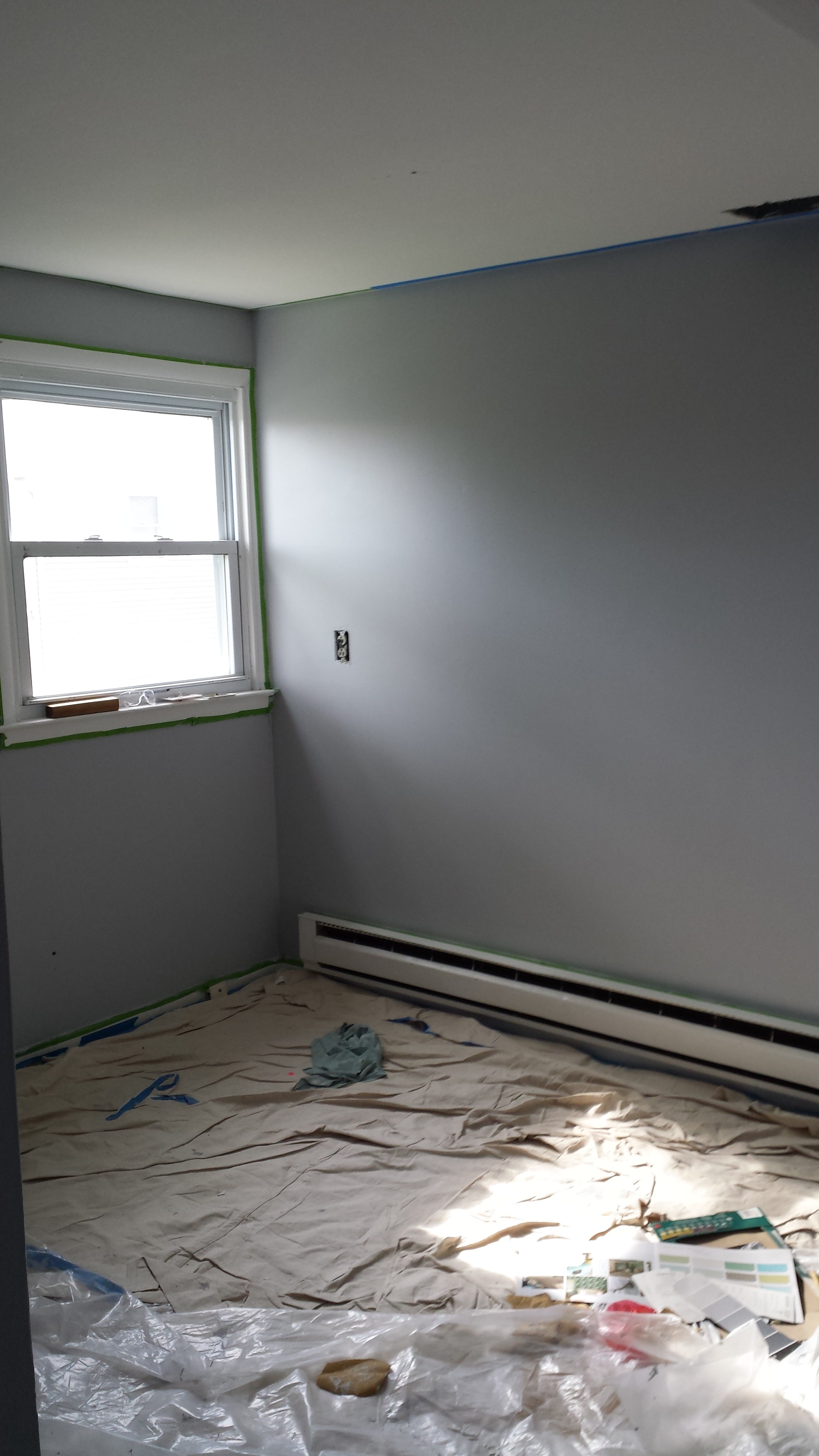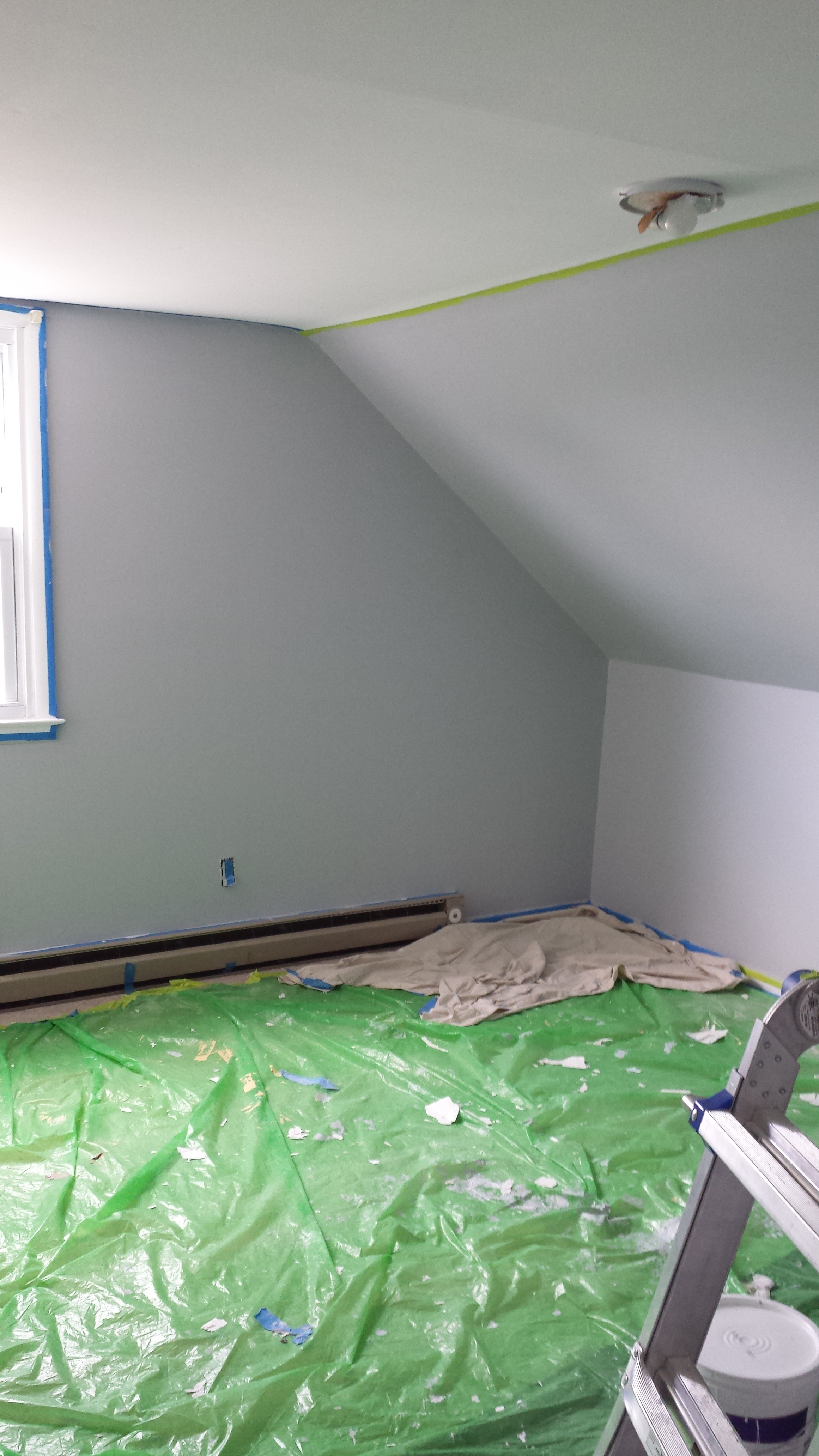 - The third upstairs bedroom was primed and the ceiling was painting (thanks to my father in law) and the first coat of wall paint is on