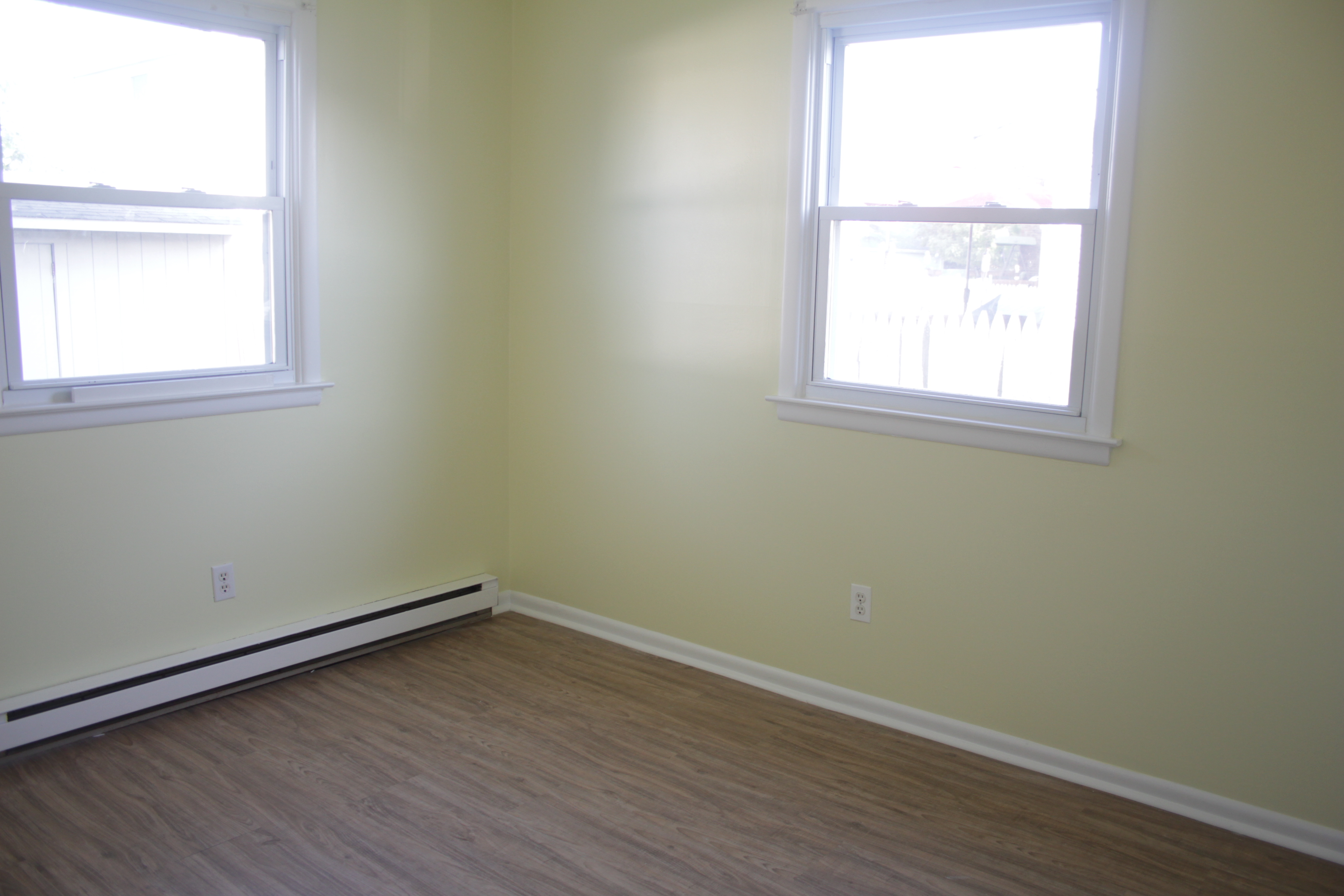 At long last, all the rooms are painted! We painted the upstairs ourselves, but after 4 months of nonstop work I am exhausted (and also 5 months pregnant) so we decided to hire a painter to do the downstairs. But before we could have the walls painted we had to get the new flooring installed in the two downstairs bedrooms.